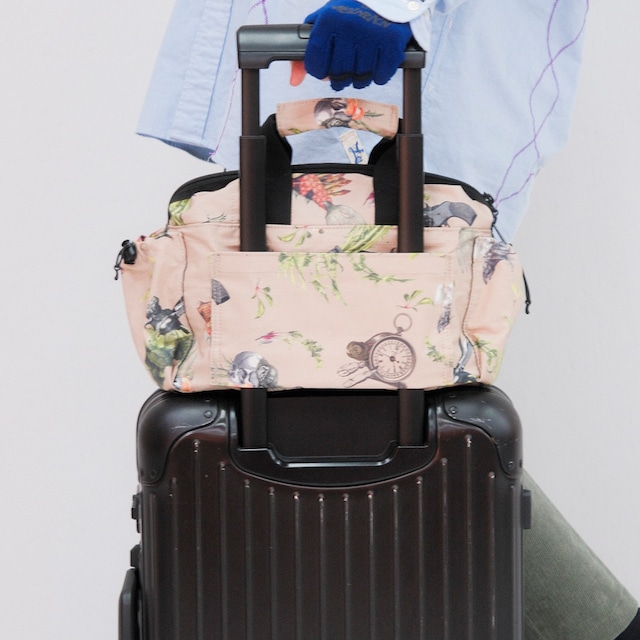 NEVER WASTEDのPLAYRIPを AlexanderLeeChangで使用している生地を使って作られたコラボレーションバッグ。 ALCのアーカイブ生地を使い、限定でごく少数だけ作りました。 スーツケースにキャリーオンできるミドルサイズのBAGの。旅先でのセカンドバッグとして、日帰りや一泊であれば単体でも対応可能な便利なヤツです。 やわらかい風合いとナチュラルな表情が特徴のナイロン素材を使用。 手さげでも付属のコードを取り付けてショルダーバッグとしても使用可能です。 両サイドには飲み物や折りたたみ傘を収納できるドローコード付きのポケット、 前面にはクッション材を仕込んだポケットがあるので、スマホやモバイルバッテリー、財布、電子タバコなどなど収納ください。 SWITCHも入っちゃいます。 メインの収納部分は生地1枚のシンプルな構造となっており、見た目以上の収納力。野球用のグローブやリカバリーサンダルなども入ります。 小ポケットが一つついておりますので鍵や小物入れなどに。 背面のキャリーオン用のパーツは上下をマジックテープで止められる仕様にしております。 キャリーオンとして使用しない場合は下のマジックをしっかりと止めてもらうと簡易的なポケットとしてもご利用いただけます。 是非遊び道具を詰め込んで旅のお供にしていただければ幸いです。 スペック: 本体;カラー ベージュ(アニマルプランツパターン):コットン100% パープル(ニットマルチパターン):ポリエステル100% ブラック(CATBONEパターン):ストレッチデニム100% 外寸法 幅36.5cm×高さ28cm×奥行16cm(外ポケット含む) 内寸法 幅30cm×高さ26cm×奥行13cm 背面スーツケースハンドルバーループ幅 22cm 正面ポケット 幅30.5cm×高さ16cm×奥行2cm 注意事項(必ずお読みください) 注1)猫の毛の混入について デザイナー本人が猫と共同生活をしているため、商品に猫の毛が混入してる場合があります。がんばってできるだけ取り除く様にしますが、とりきれない場合があります。誠に申し訳ありませんが、ご了承ください。なお、猫アレルギーなどの方は十分に注意してください