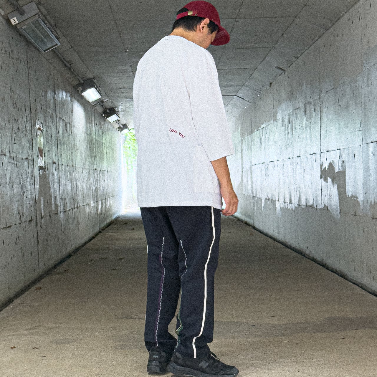 細身のラインテープを両脇に、