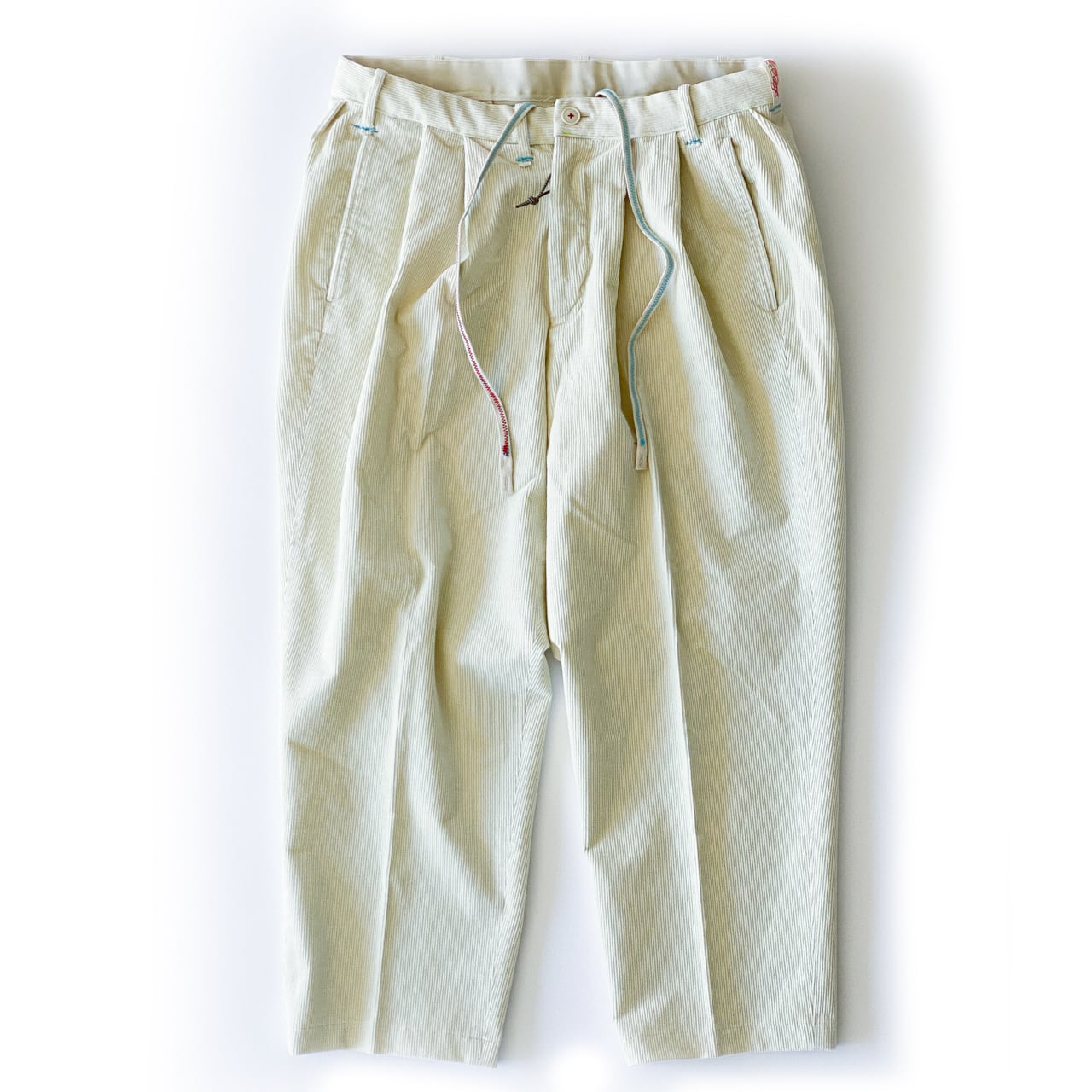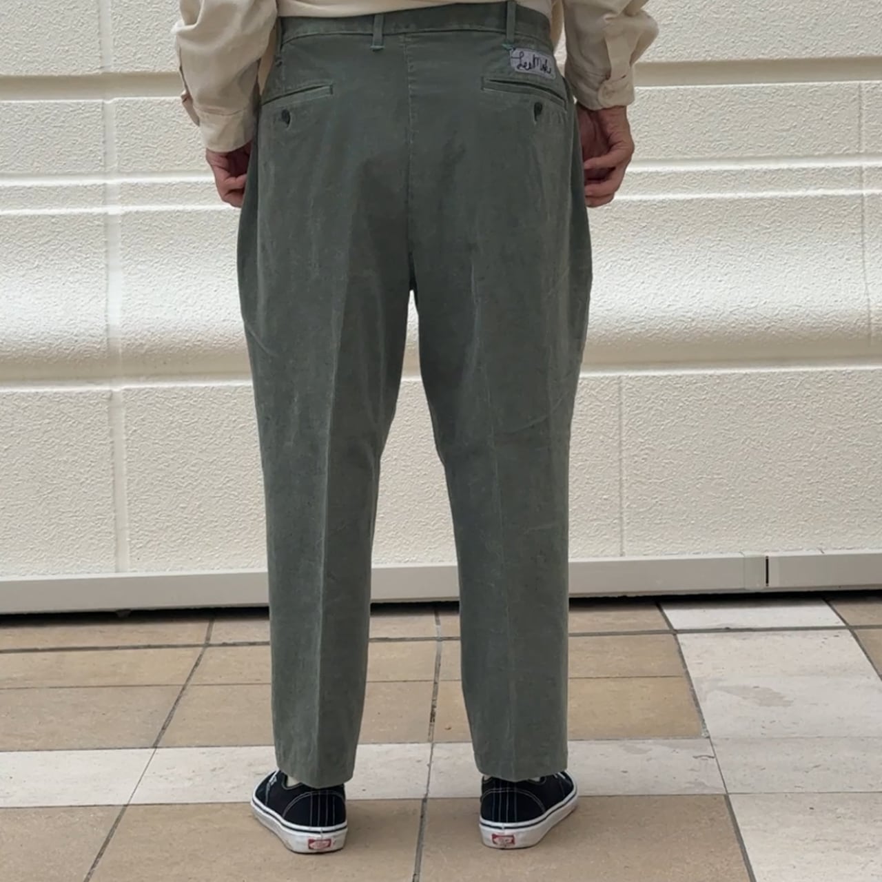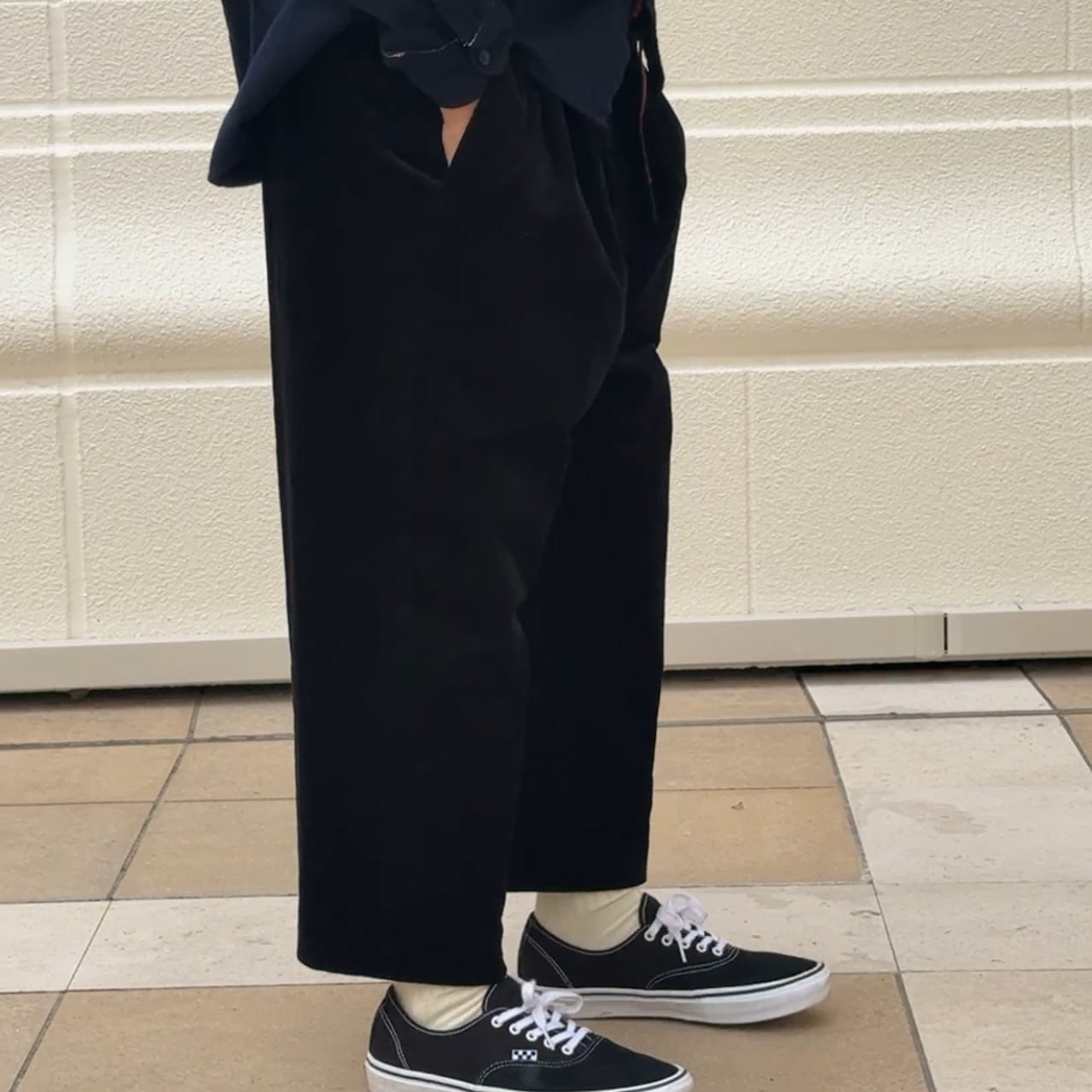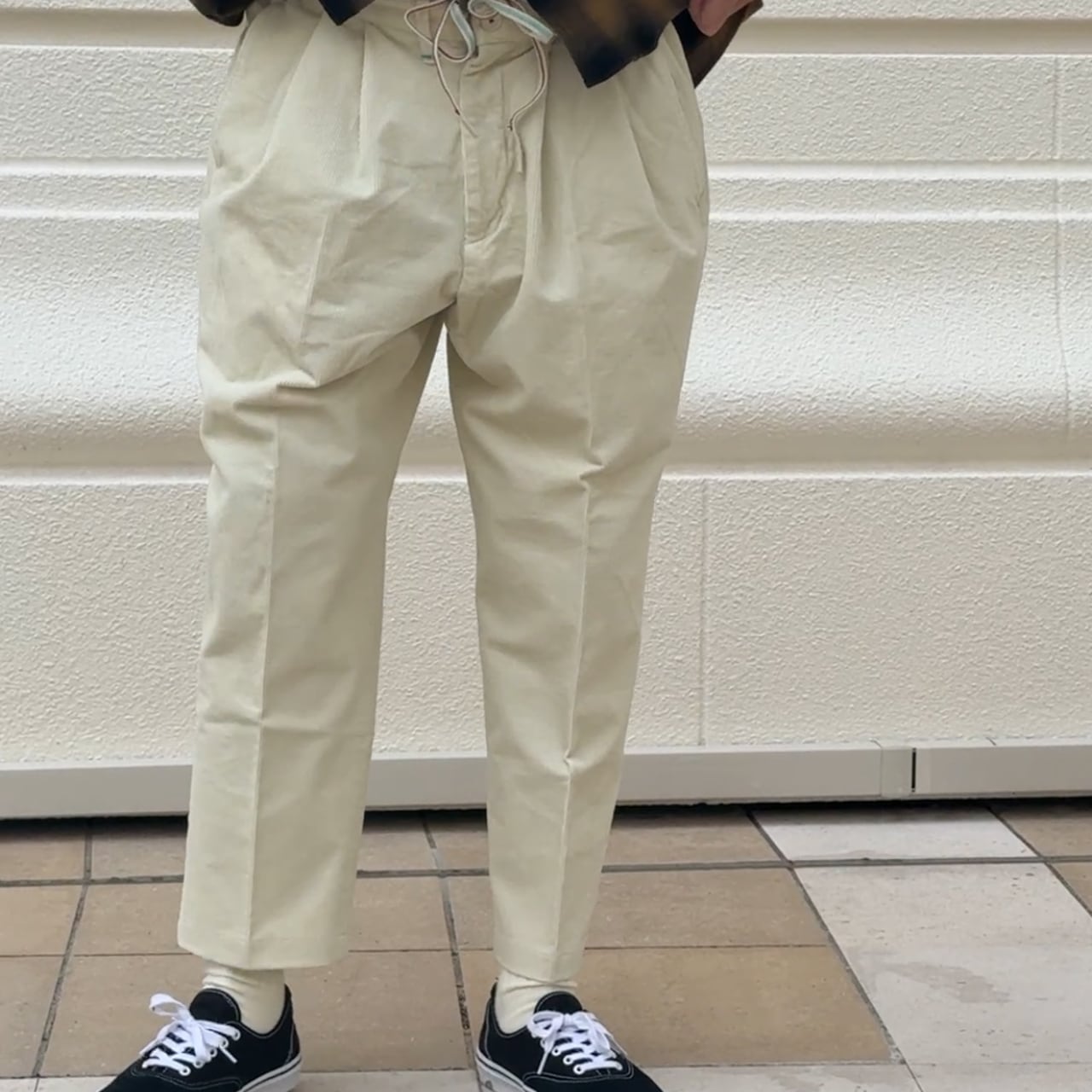 アンクル丈に最適な太めの2タックテーパードシルエットで、