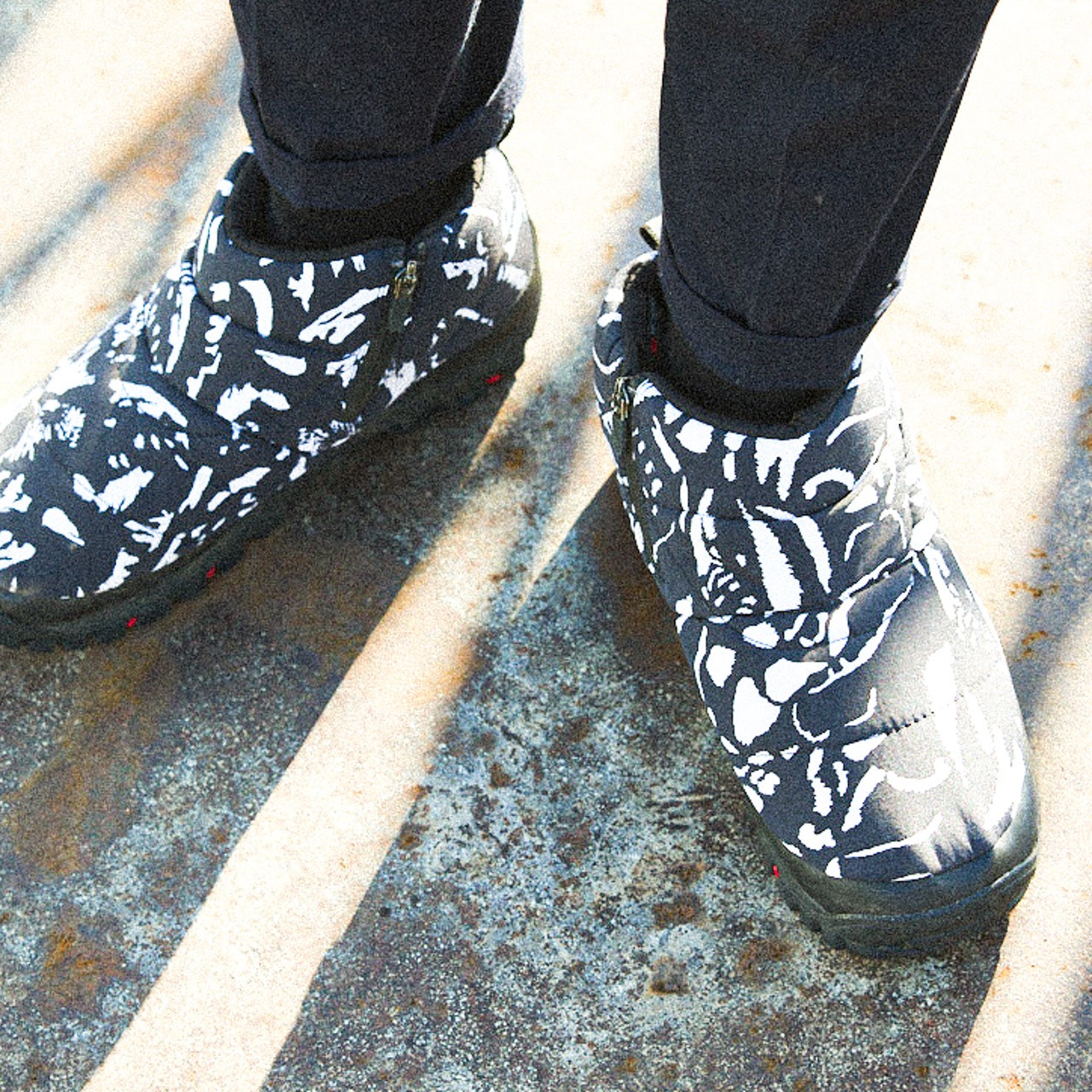 オリジナル猫モチーフ迷彩柄の個性的な1足となっている。ユニセックス展開。